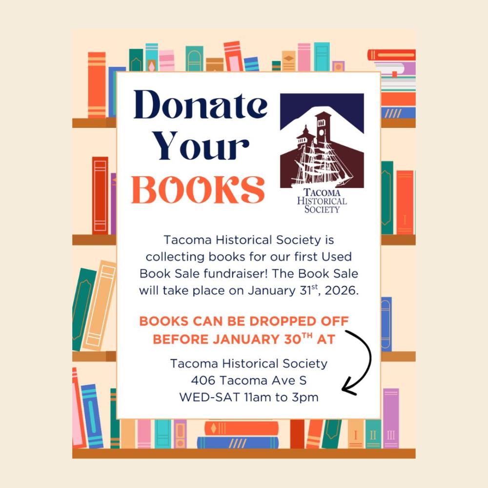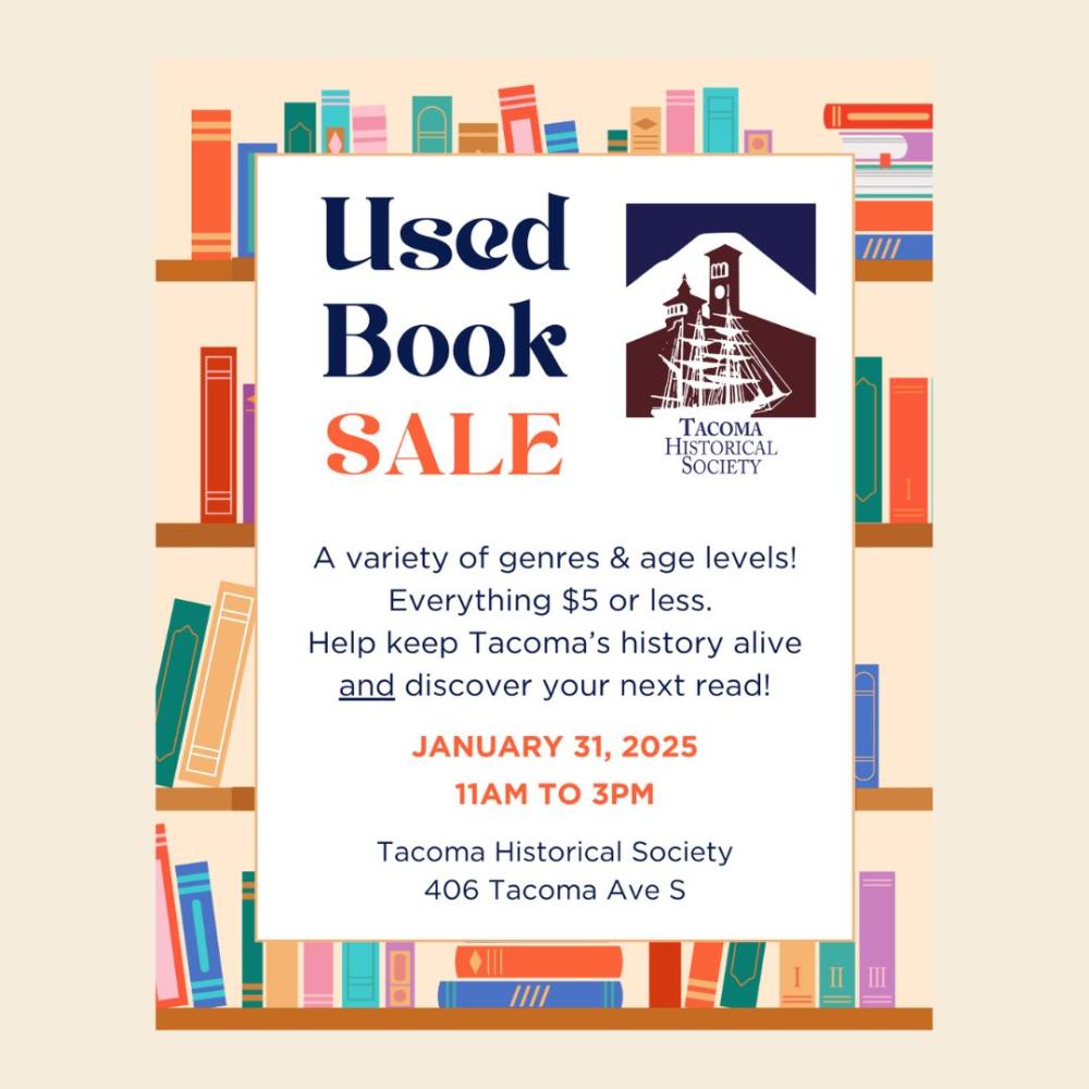 Join Tacoma Historical Society for our first Used Book Sale! Help support the museum and discover your next read! There will be books of all genres and for all ages. Everything is $5 or less.